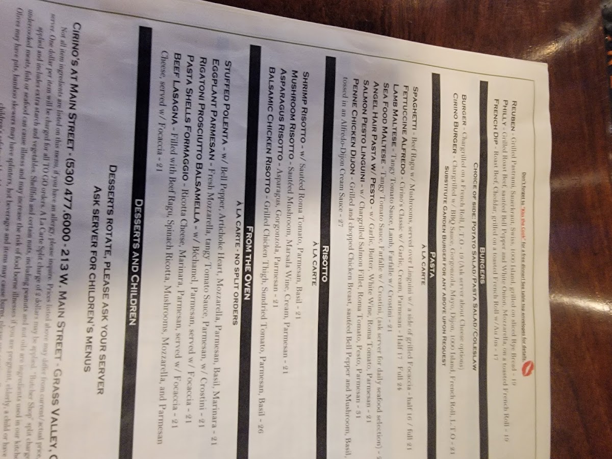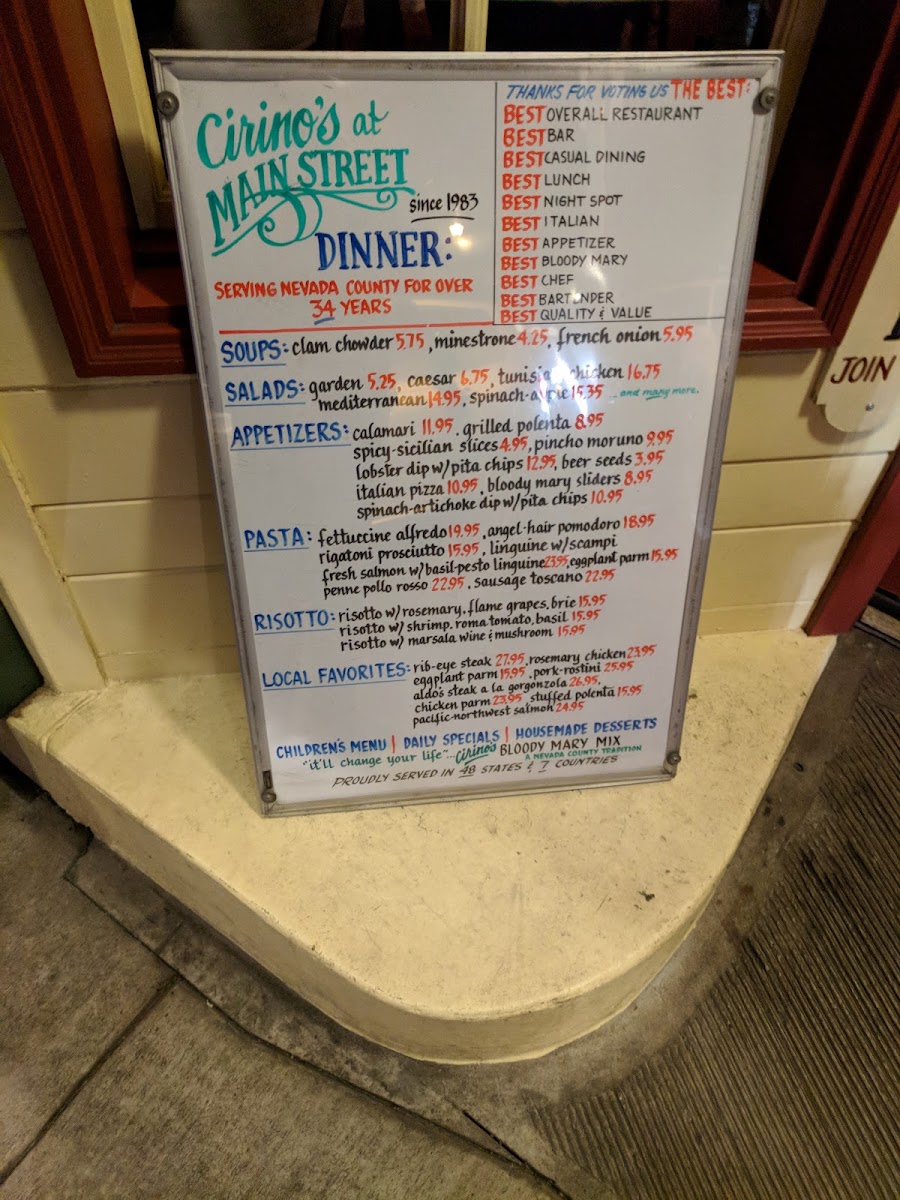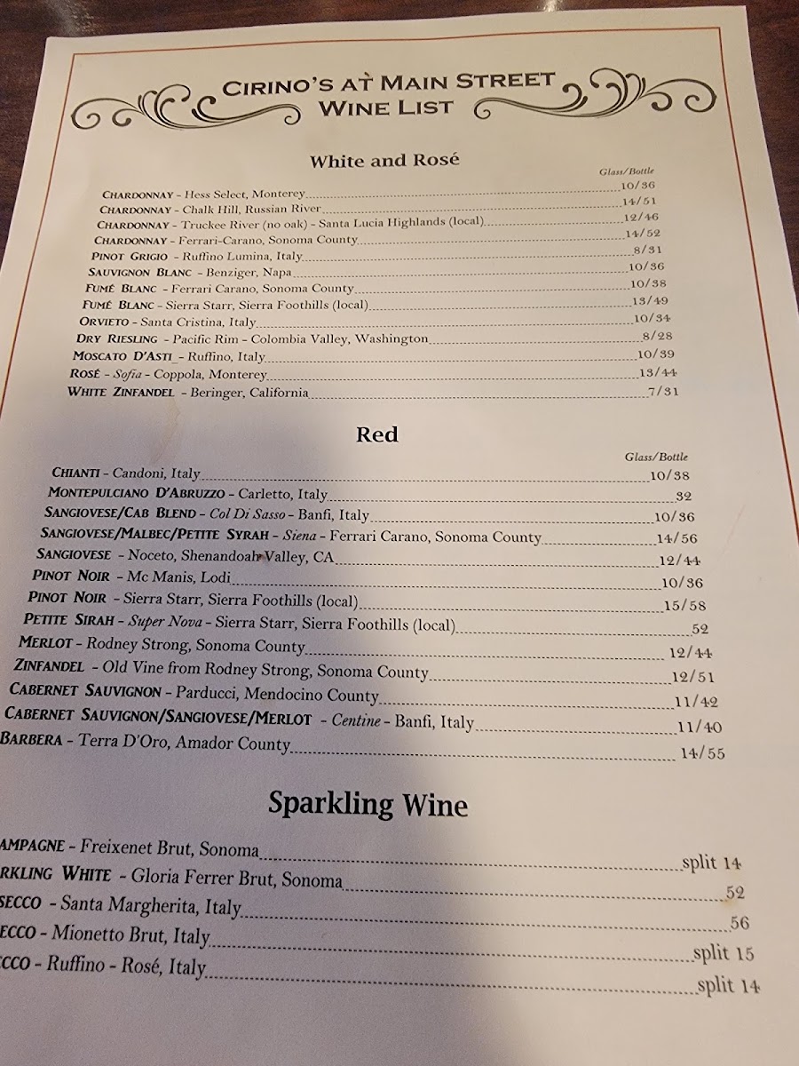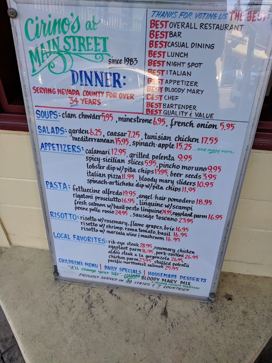 In a world brimming with dining options, Cirino's at Main Street stands out as a shining star. Whether you're a Grass Valley local or just passing through, be sure to make a stop at this classic Italian restaurant. Come experience the extraordinary flavors, unmatched service, and the warm, welcoming atmosphere that keep patrons returning time and again.