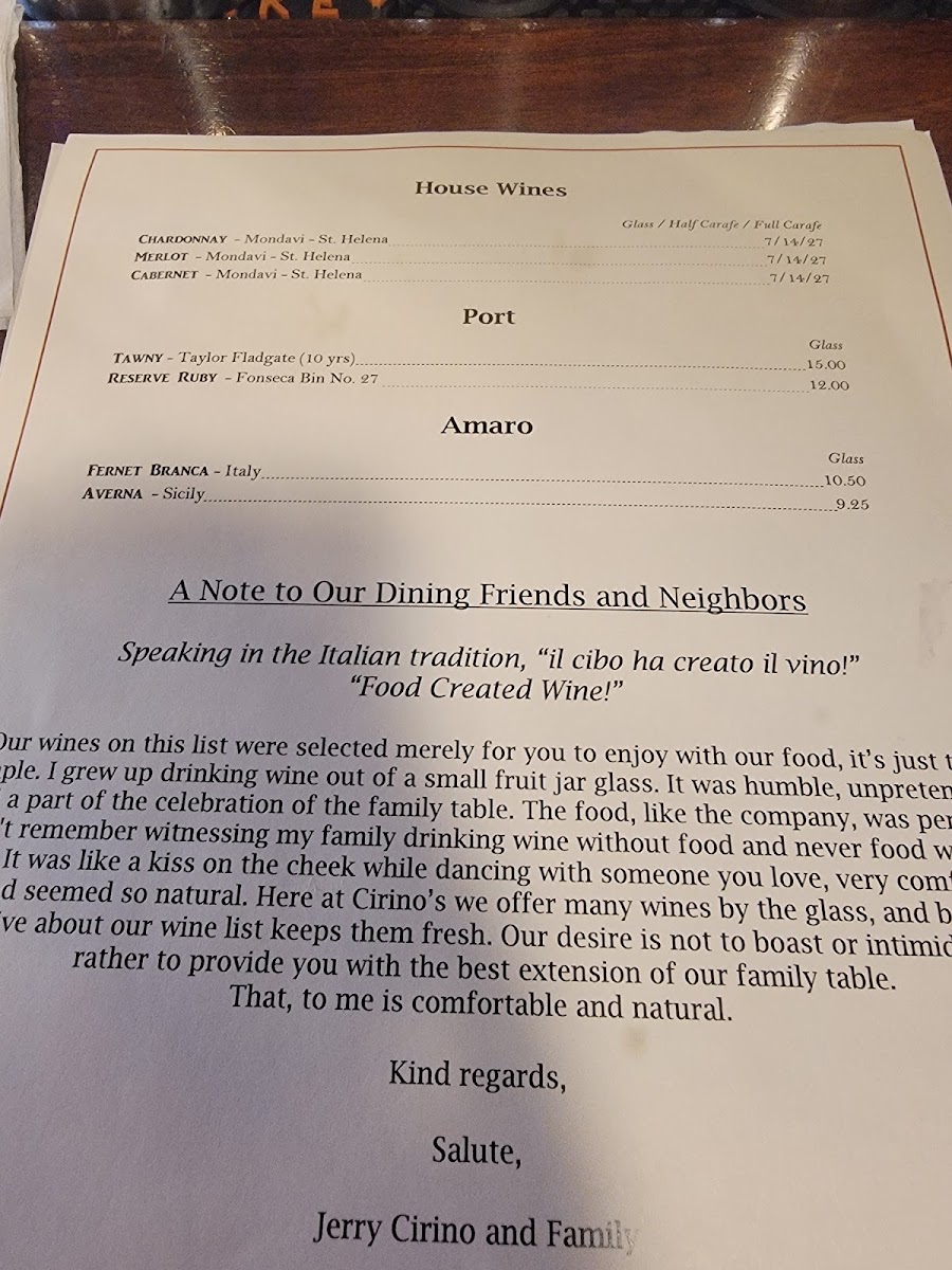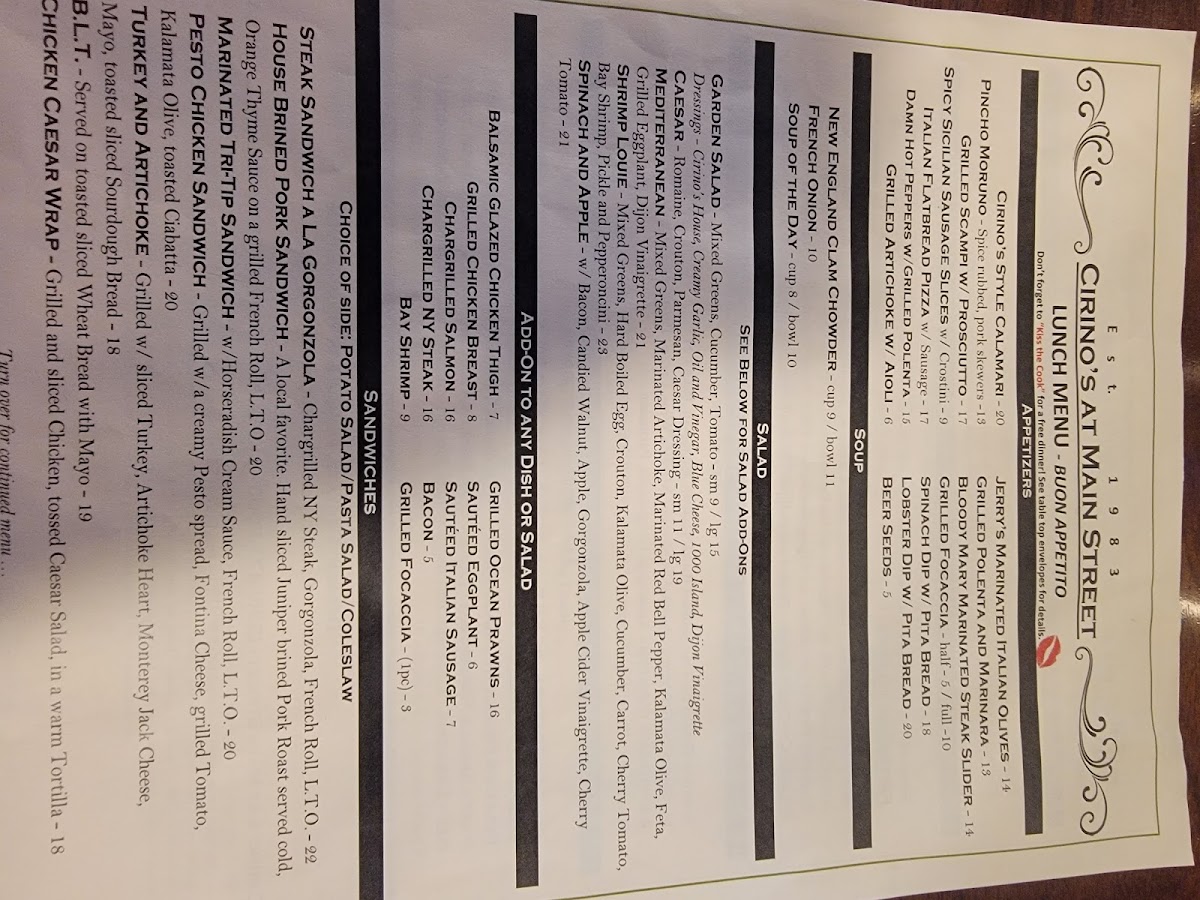 What truly sets Cirino's apart is its exceptional service. Guests like Bessie Gessner highlight the restaurant's ability to accommodate large parties without reservations and maintain swift service, while Lisa Scaduto praises the attentive staff who genuinely care about the dining experience. Whether it's a casual lunch or a festive dinner, the team's dedication to hospitality shines through in every interaction.